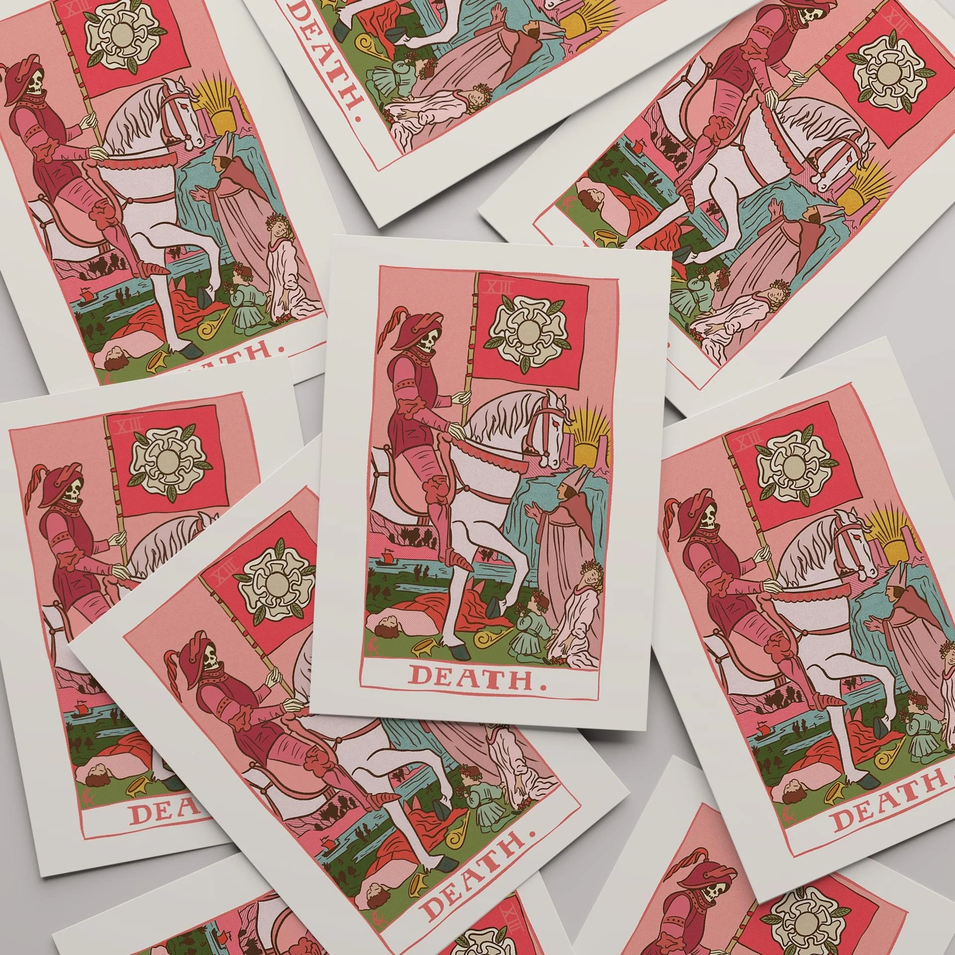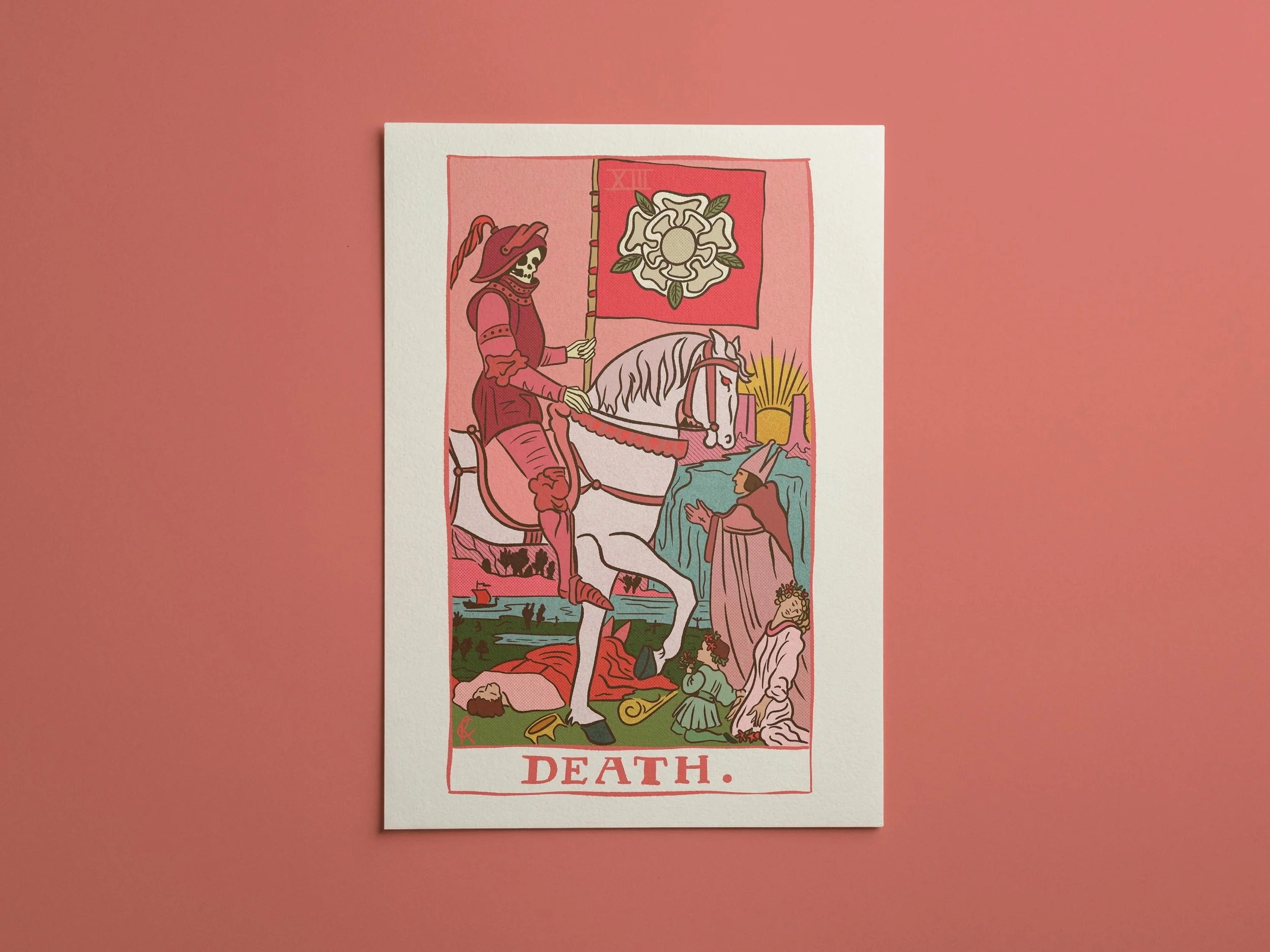This bold and beautifully chaotic Death tarot card wall art is here to help you burn it all down and rise again... but make it aesthetic. Designed in a vibrant retro-inspired style with dopamine-fueled pinks, reds and warm tones, this is the perfect piece for anyone embracing transformation, healing, and new beginnings — with a side of ✨ drama ✨.