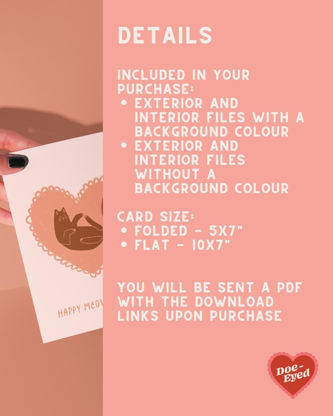 You’ll receive a pdf with a link to dropbox where you will find the 5x7" foldable digital card, with both interior and exterior designs, because yes — even your printer deserves a little dopamine hit.