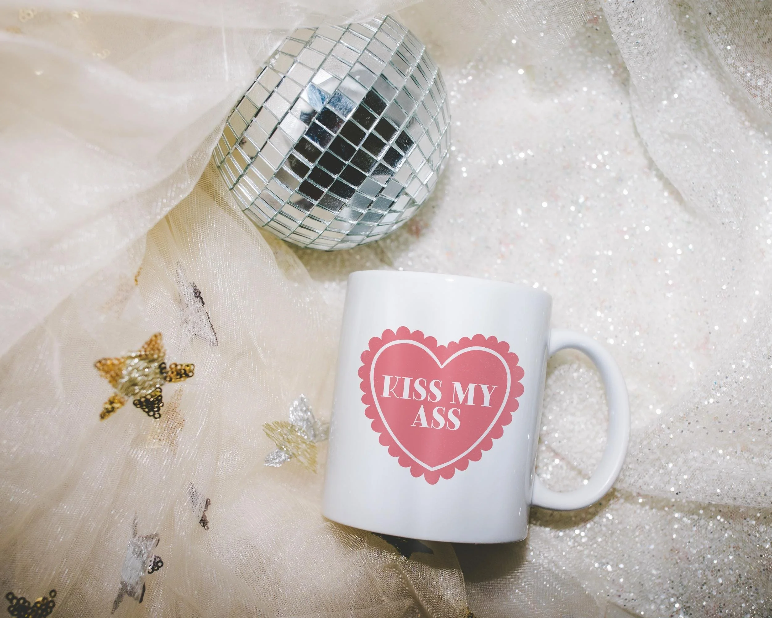 Kiss My Ass Mug | Funny Retro Heart Mug with Scalloped Edge | Sassy Aesthetic Dopamine Decor Gift | 11oz/15oz mug