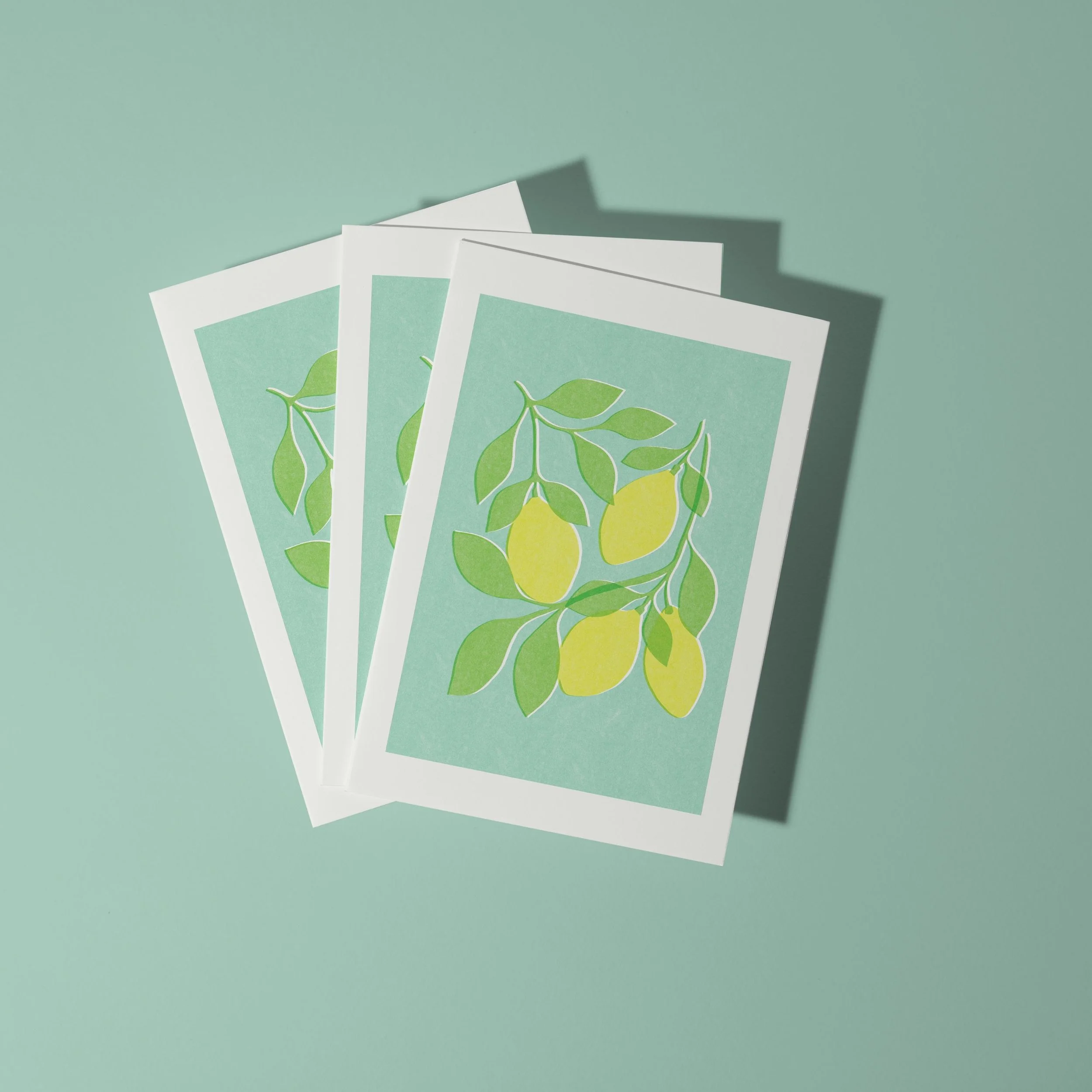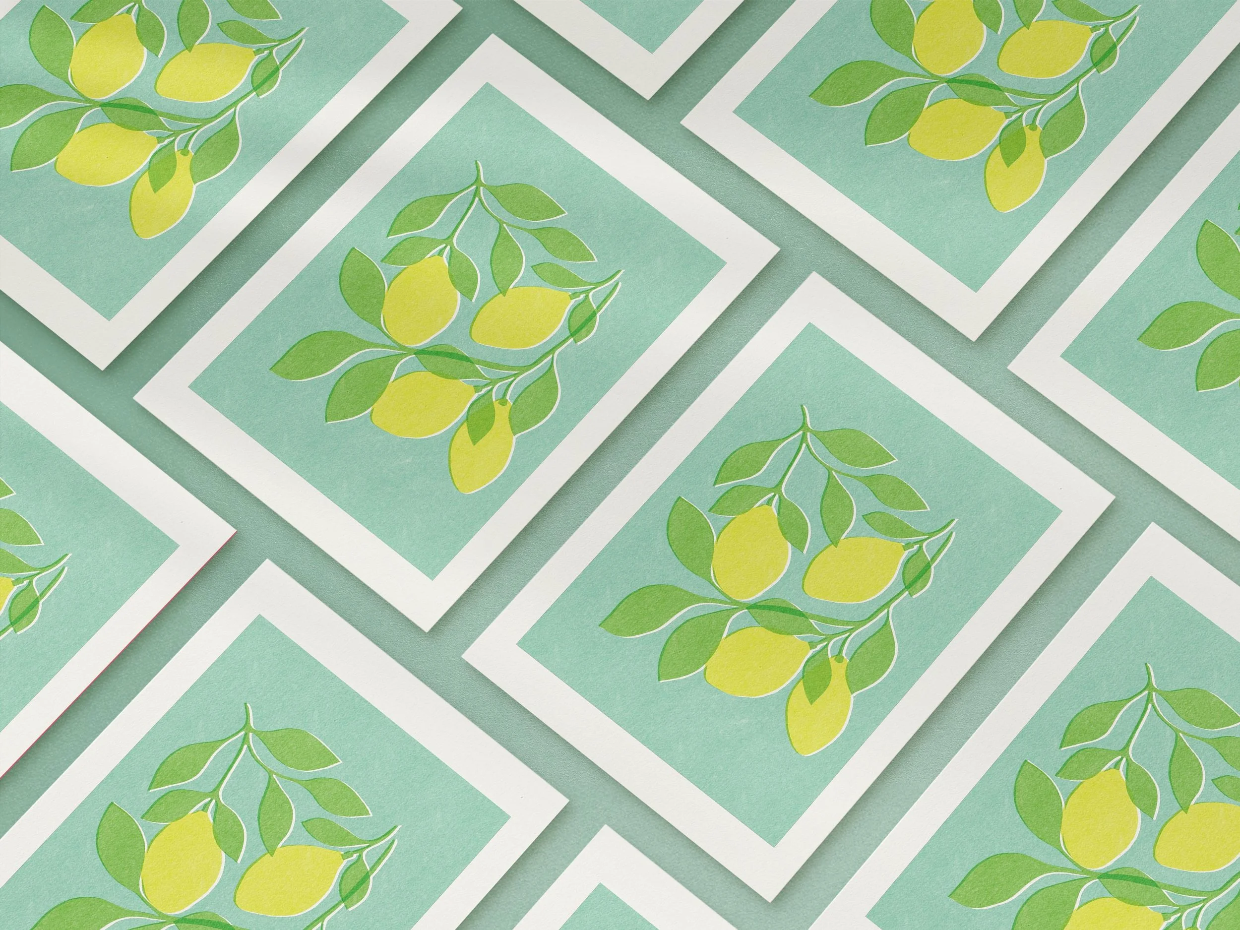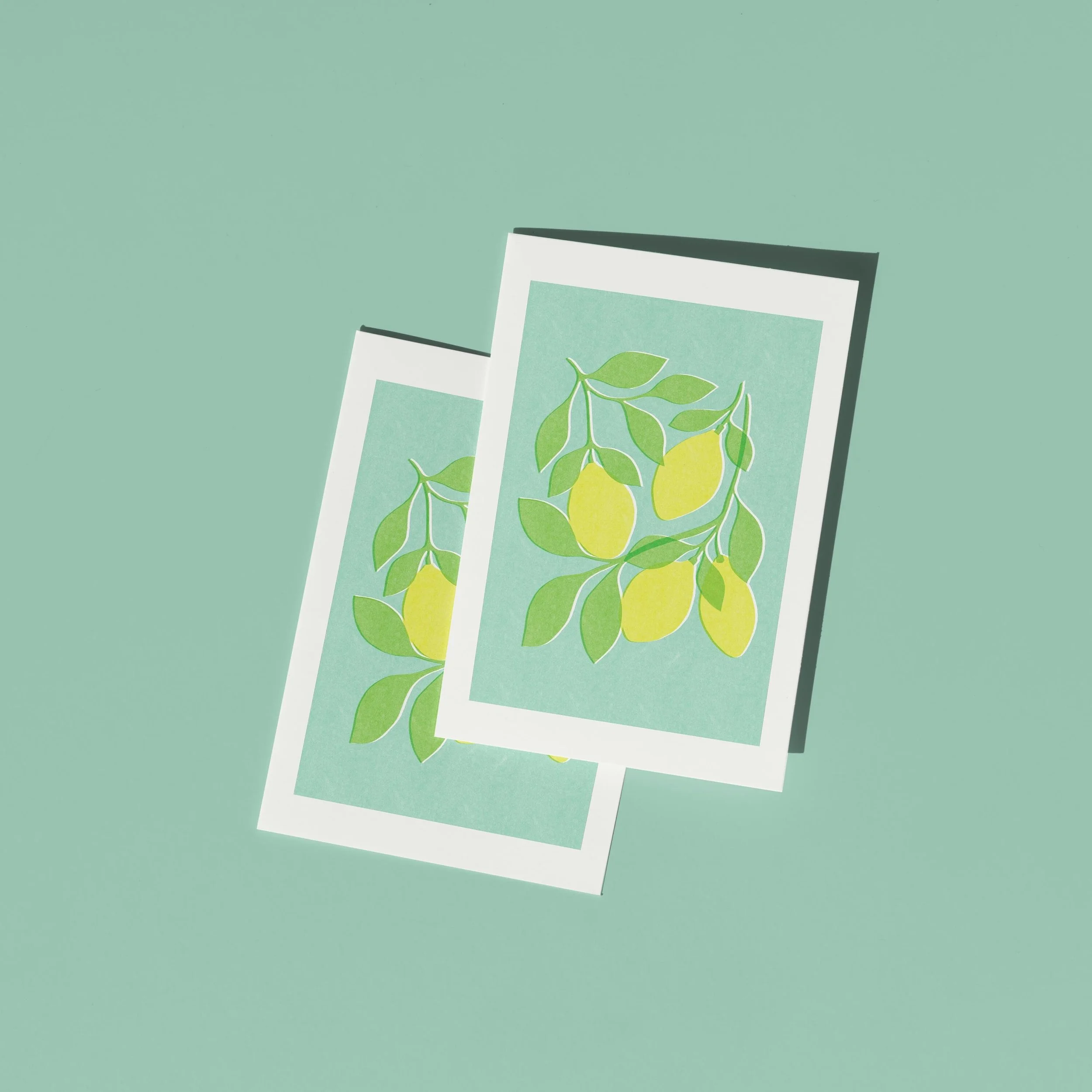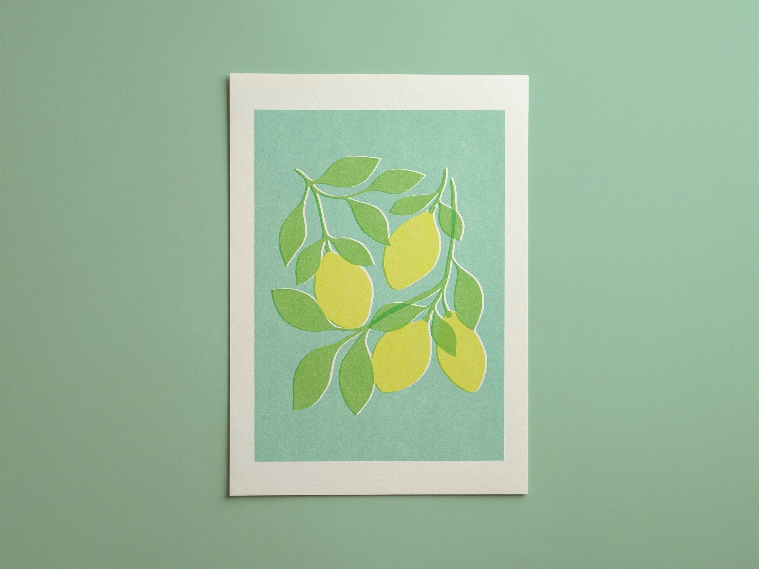 Lemon Risograph Print, A3 A4 A5 5x7 4x6