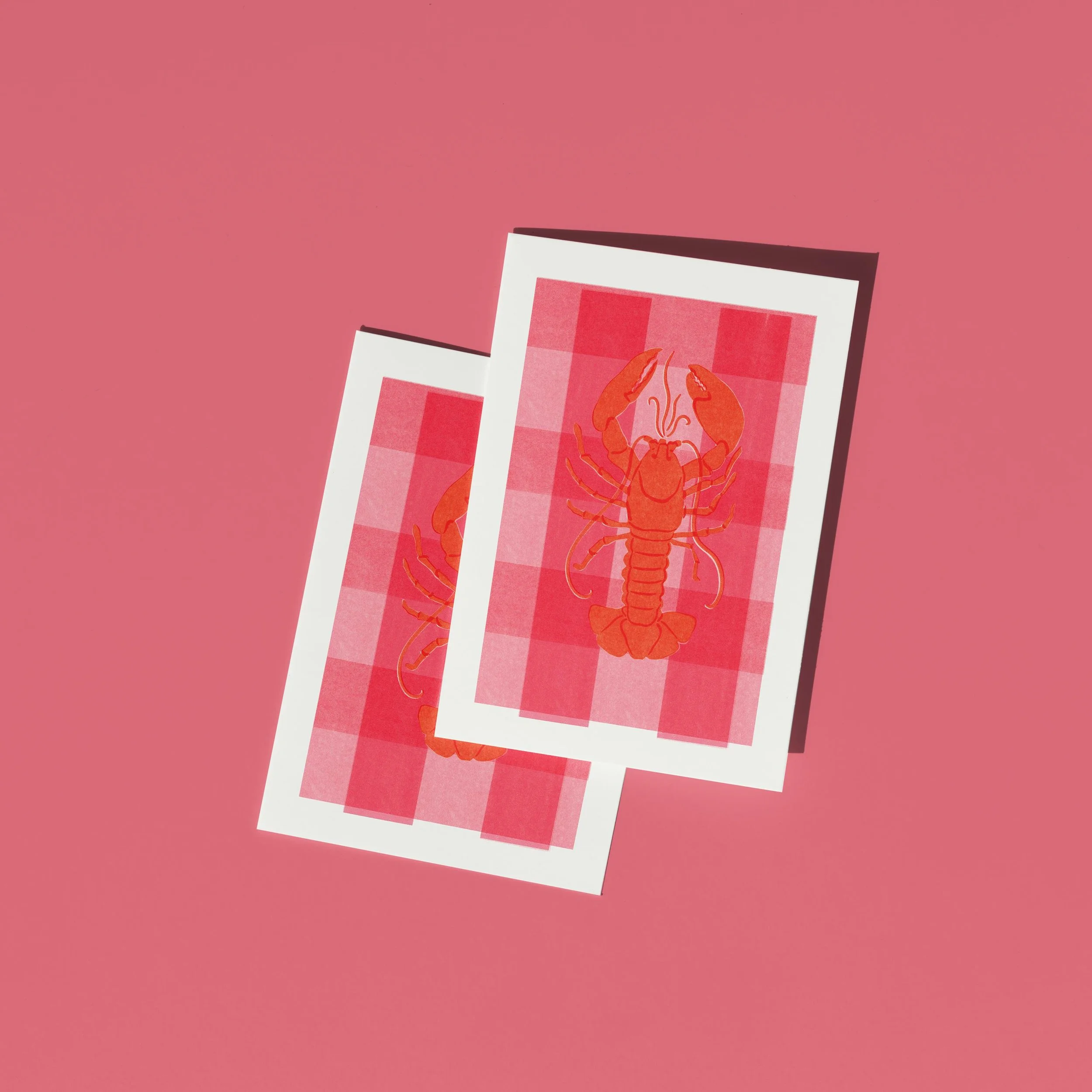 Lobster Risograph Print, A3 A4 A5 5x7 4x6