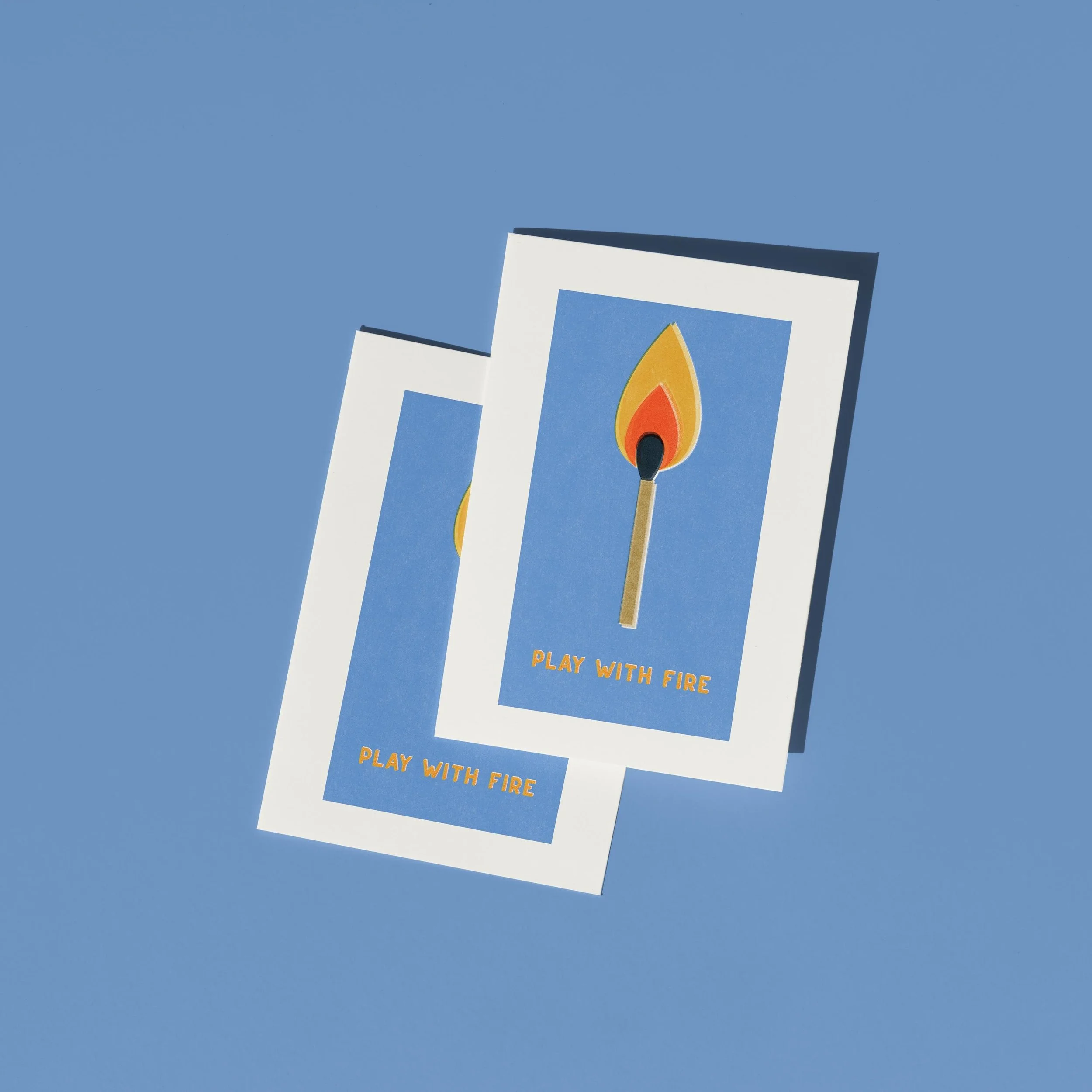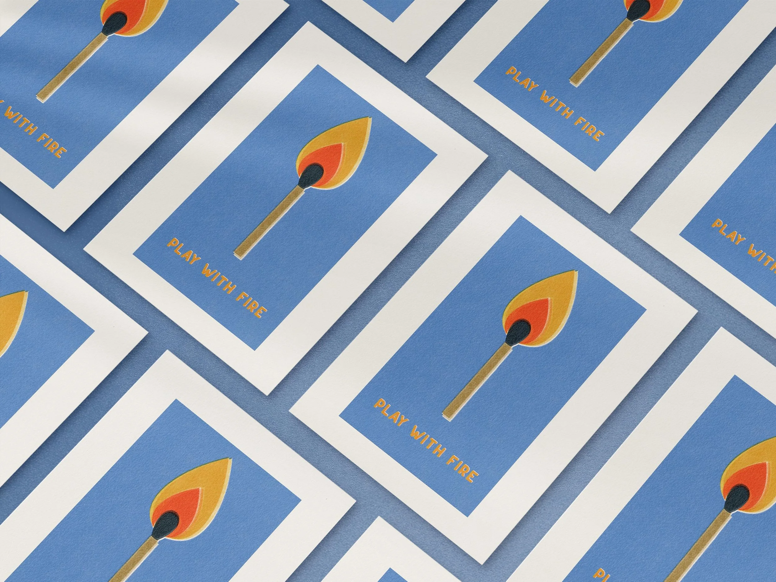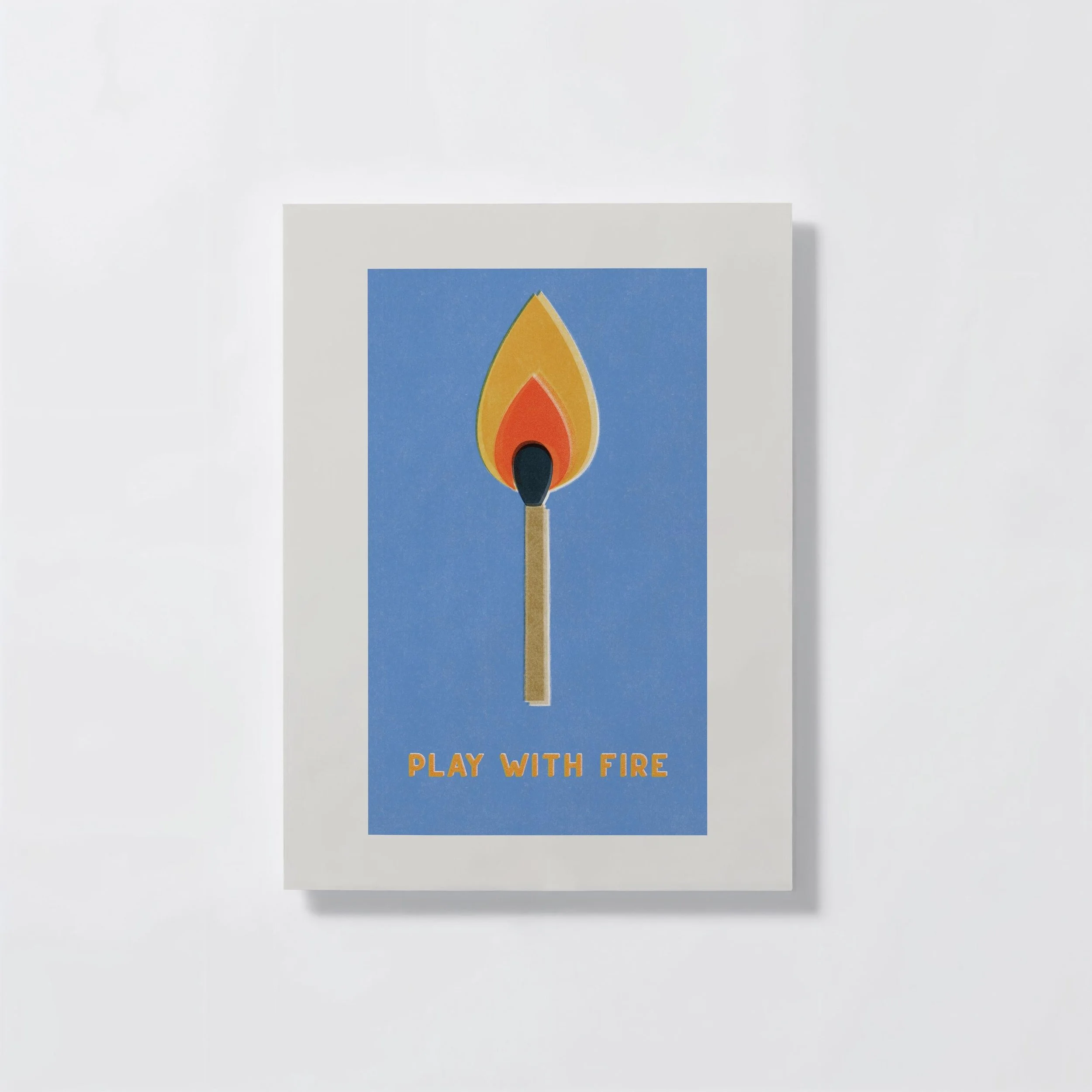 This retro-style “Play With Fire” wall art print is for the brave, the bold, and the slightly chaotic. Featuring a striking matchstick illustration in warm flame tones on a deep blue background, this risograph-inspired print packs heat — visually and emotionally.