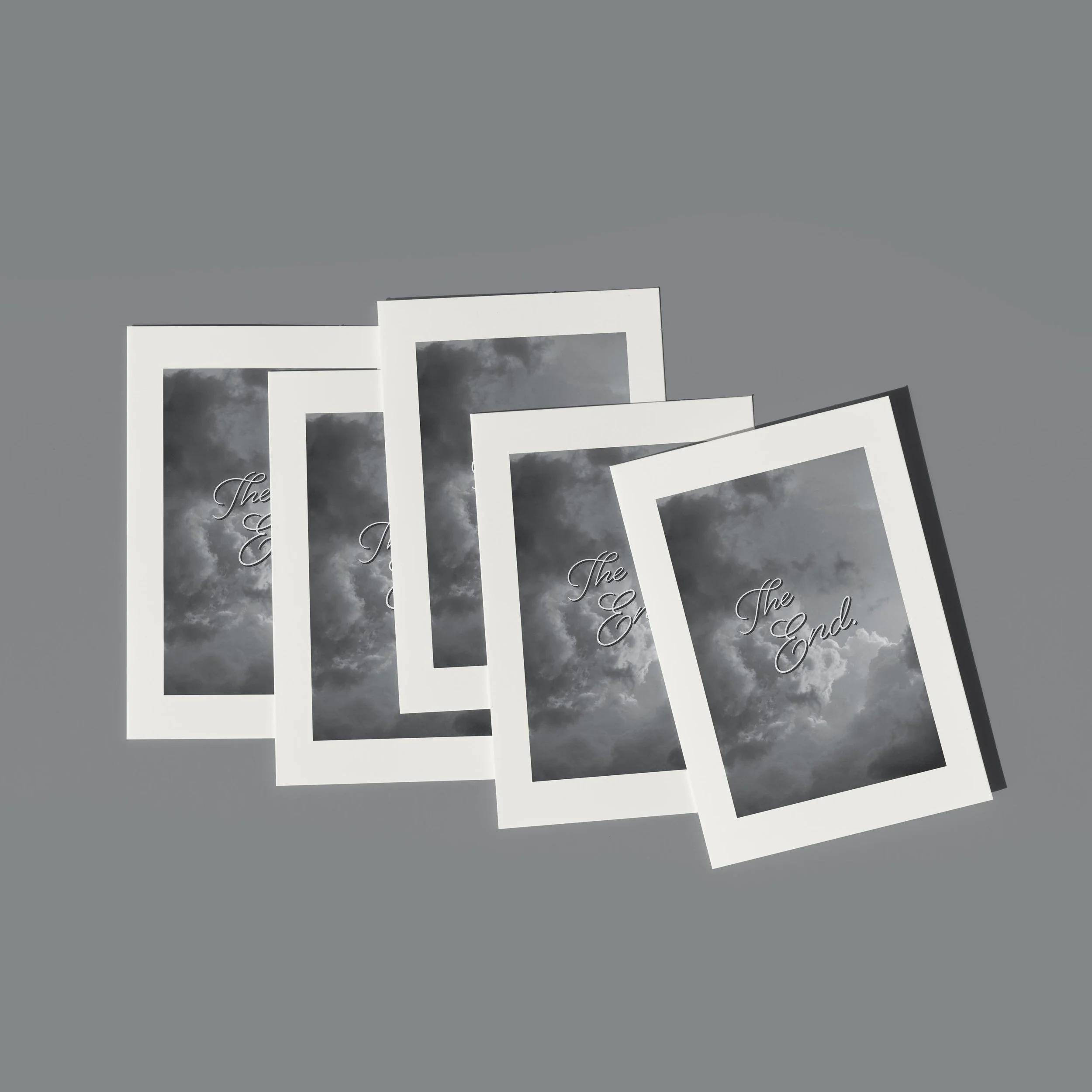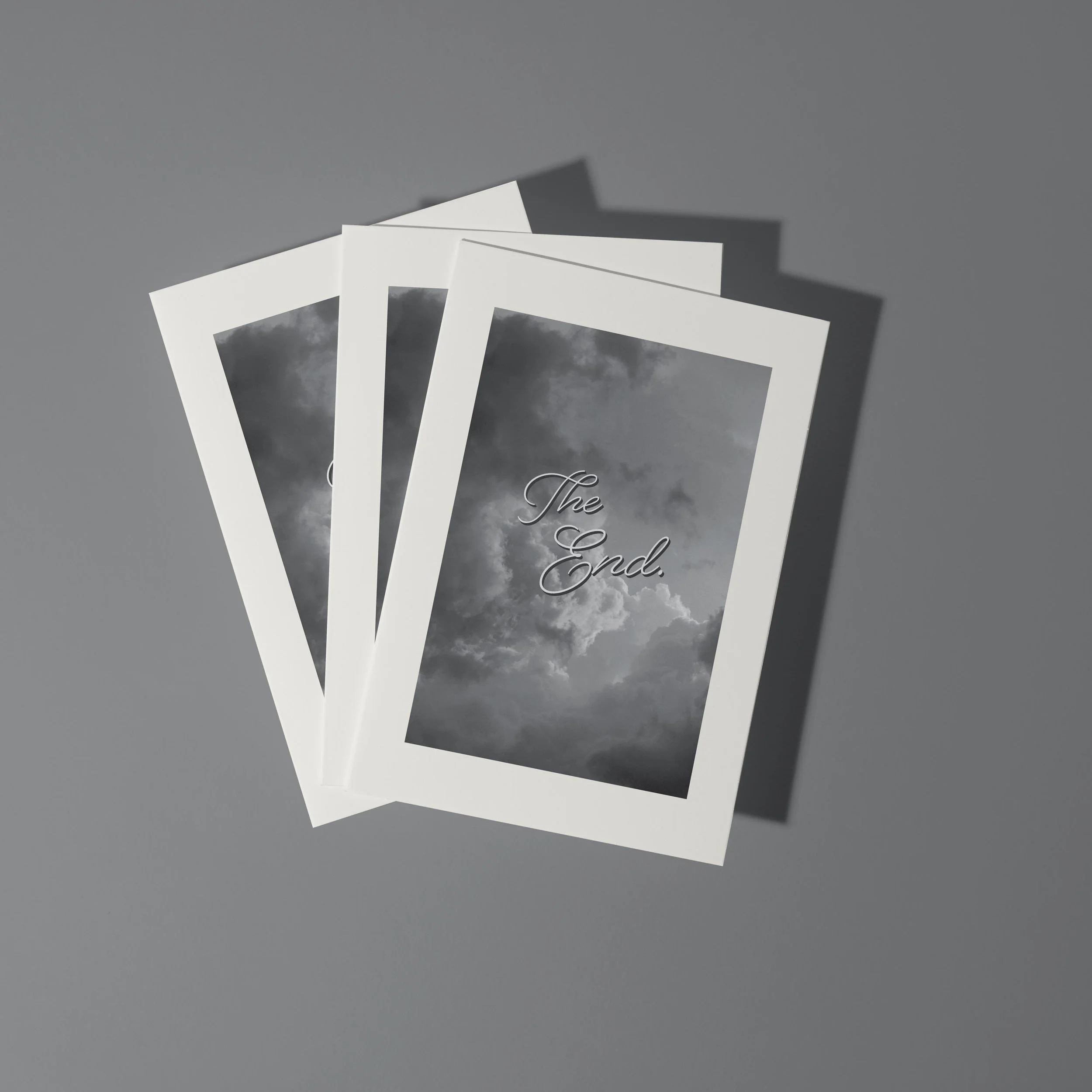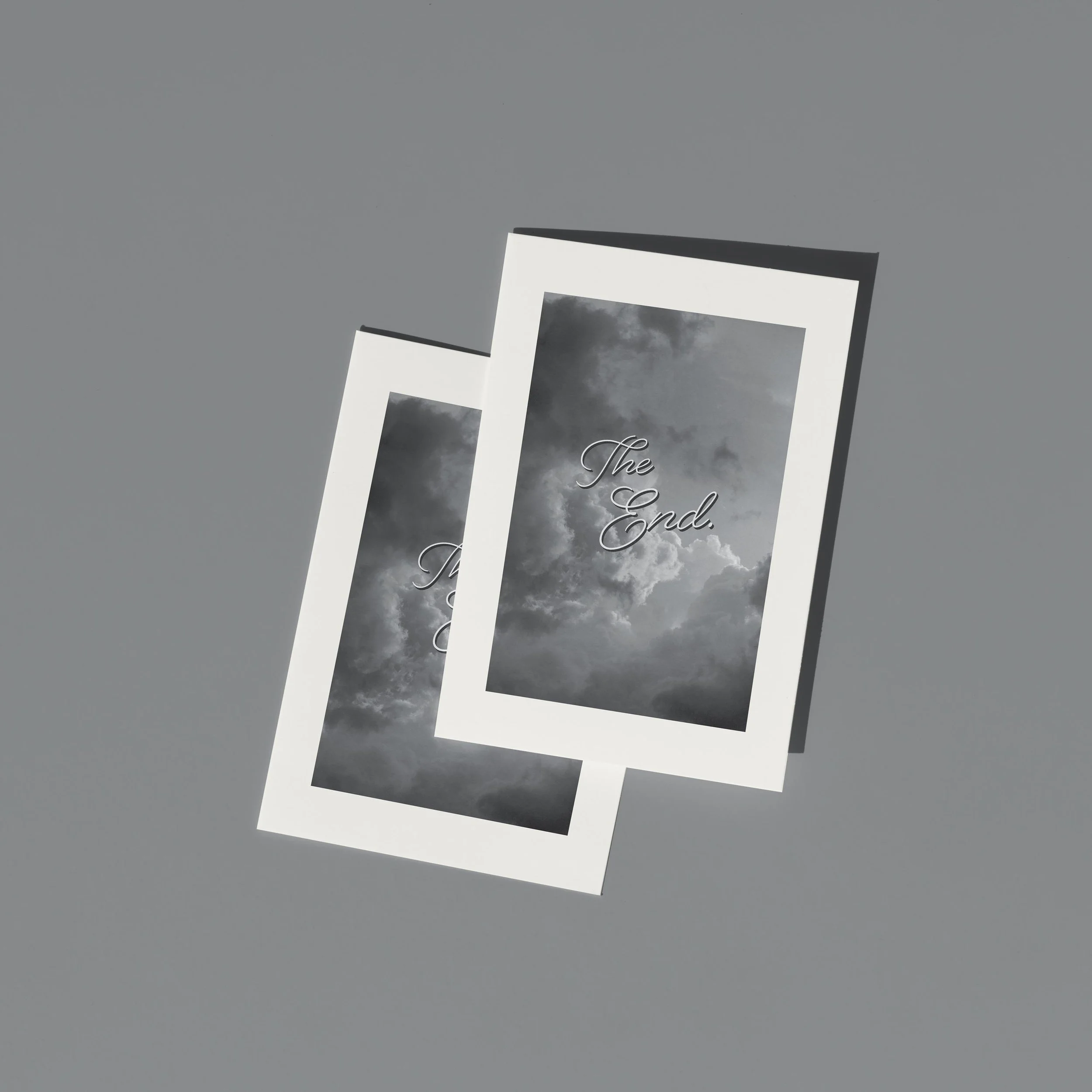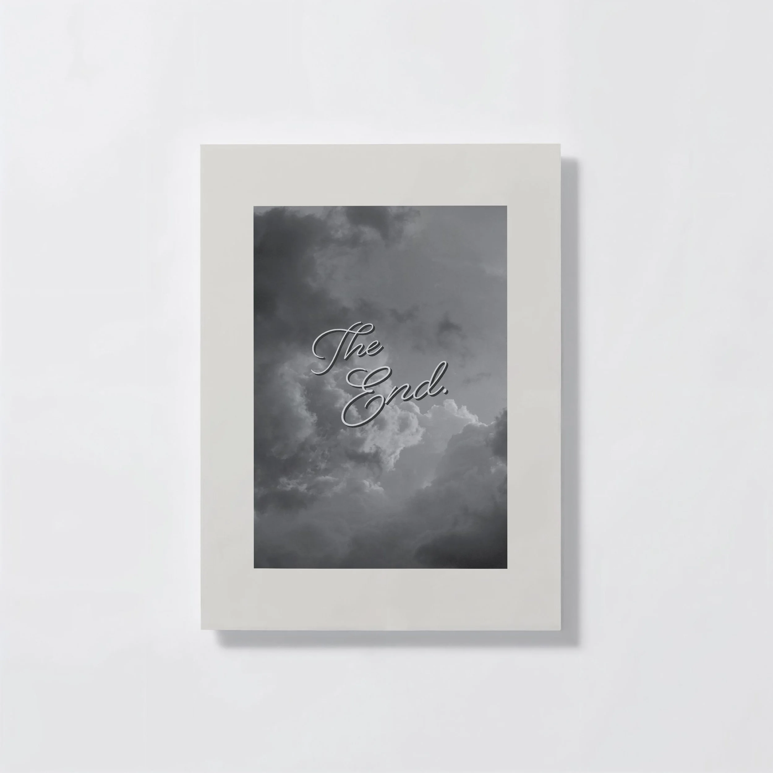 Make a statement without saying too much. This “The End” monochrome print is pure cinematic drama — think classic film noir, closing scenes, and main character energy. Set against a dramatic swirl of stormy clouds, the elegant cursive font adds a vintage Hollywood finish to this bold goodbye.